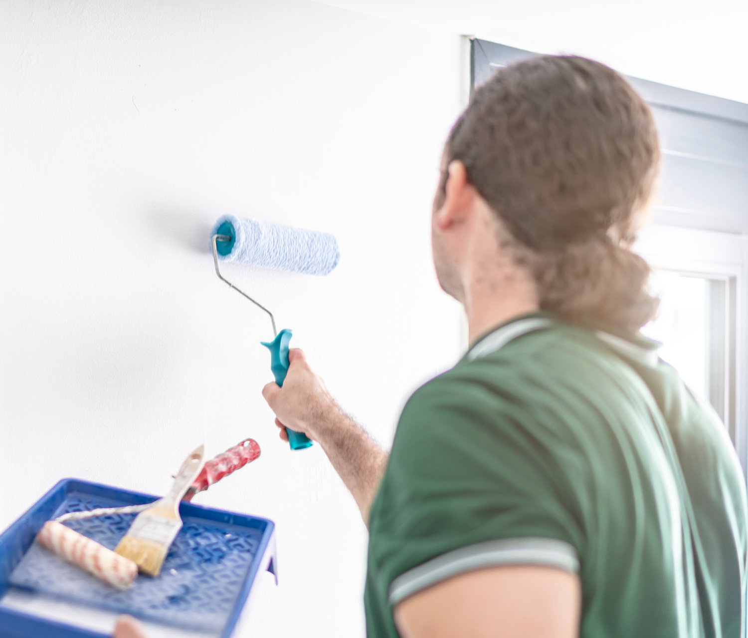 À l'aide d'un pinceau à encoller ou d'une brosse, appliquer la colle pour papier peint intissé généreusement et de manière uniforme sur la première section du mur correspondant au premier lé, débordez légèrement du trait de repaire tracé précédemment.